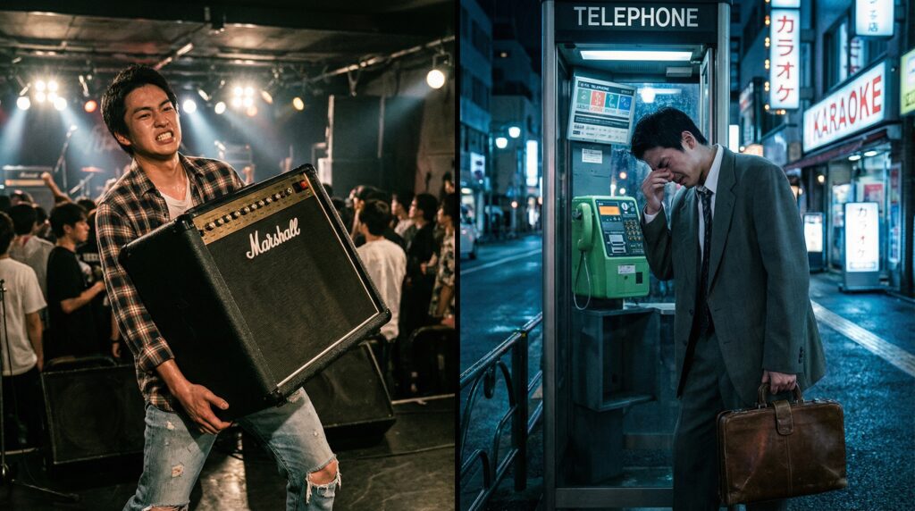 物語の始まりは、バブル経済の余韻が残る1990年代初頭です。学生時代のバンド仲間だったと思われる「あいつ」は、音楽の道を諦め、大企業への就職を選びました。