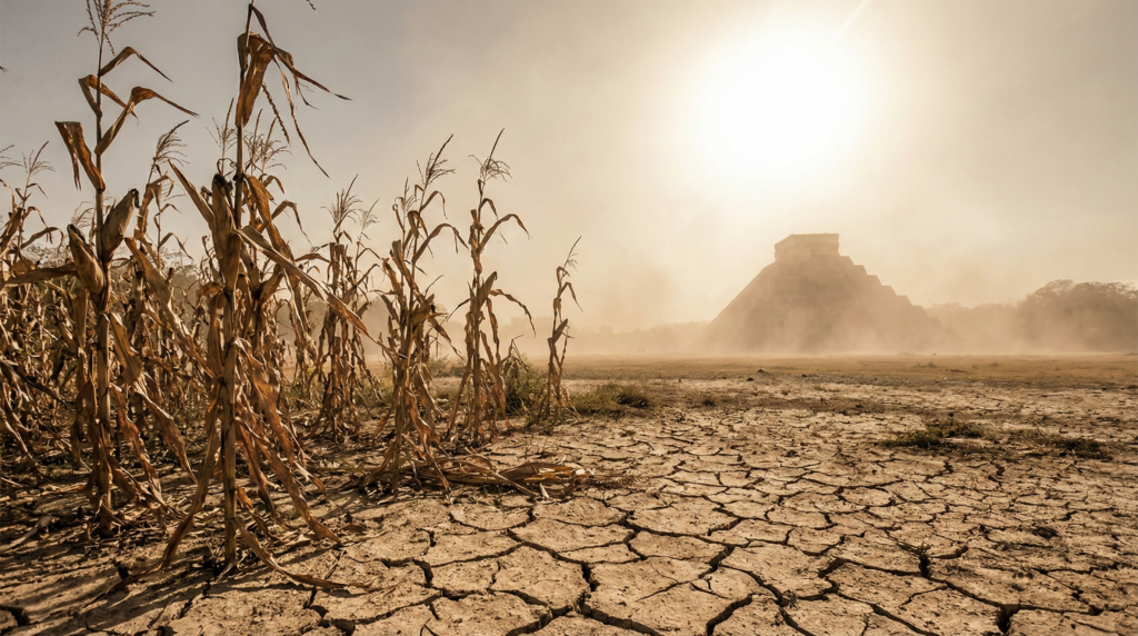 近年の研究で、洞窟内の鍾乳石や湖の堆積物を分析した結果、8世紀から9世紀にかけて、マヤ地域を襲う異常な乾燥化が断続的に発生していたことが判明しました。特に、数十年〜100年単位で続く壊滅的な干ばつが、文明の息の根を止めた可能性が高いとされています。