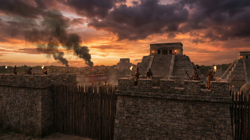 近年のLiDAR(レーザー測量)調査により、都市の周囲に急造された防御壁や砦の跡が多数発見されています。これは、一般市民までもが巻き込まれる激しい殺し合いが行われ、農地やインフラが破壊されたことを示唆しています。
